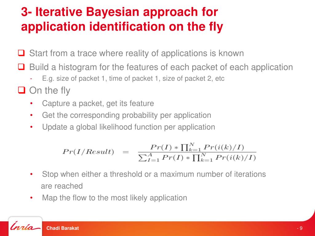 3- Iterative Bayesian approach for application identification on the fly Ratio of correctly classified flows Packet number / application Chadi Barakat