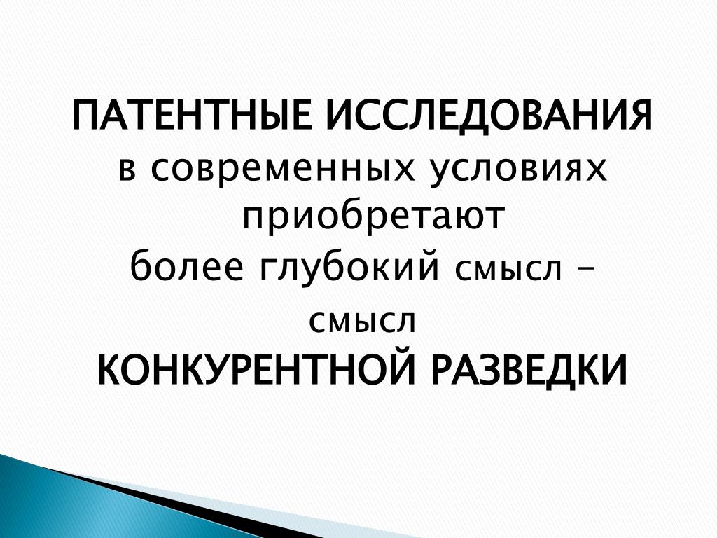 ПАТЕНТНЫЕ ИССЛЕДОВАНИЯ в современных условиях приобретают более глубокий смысл – смысл КОНКУРЕНТНОЙ РАЗВЕДКИ
