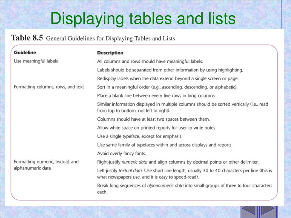 2. General Designing Guidelines for Forms and Reports • General Formatting Guidelines for Forms/Reports • Highlighting • Displaying Text • Displaying Tables/Lists 8.10