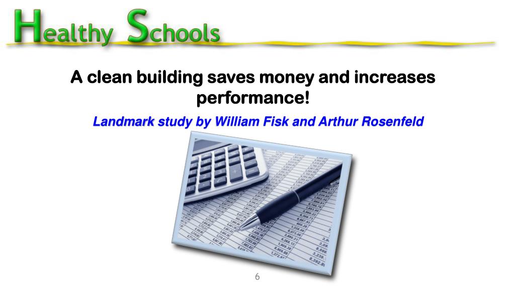 A clean building saves money and increases performance! Landmark study by William Fisk and Arthur Rosenfeld 6