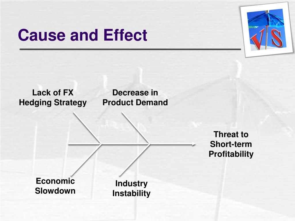Cause and Effect Lack of FX Hedging Strategy Decrease in Product Demand Threat to Short-term Profitability Economic Slowdown Industry Instability