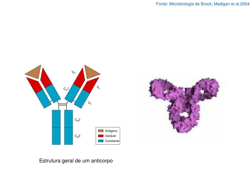 Fonte: Microbiologia de Brock; Madigan et al.2004 Estrutura geral de um anticorpo