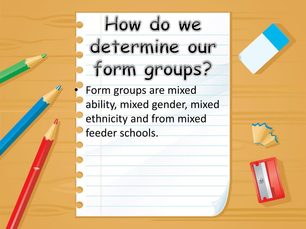 How do we determine our form groups? • Form groups are mixed ability, mixed gender, mixed ethnicity and from mixed feeder schools.