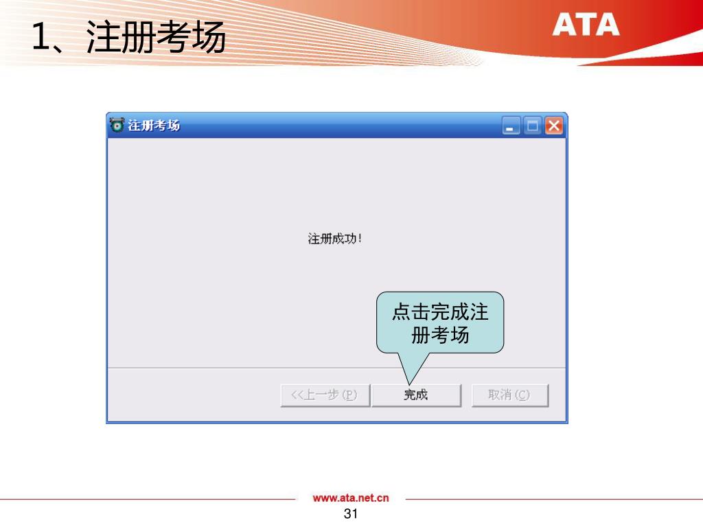 2、考试系统安装 安装考试机程序过程 点击“完成” 完成考试机安装 27