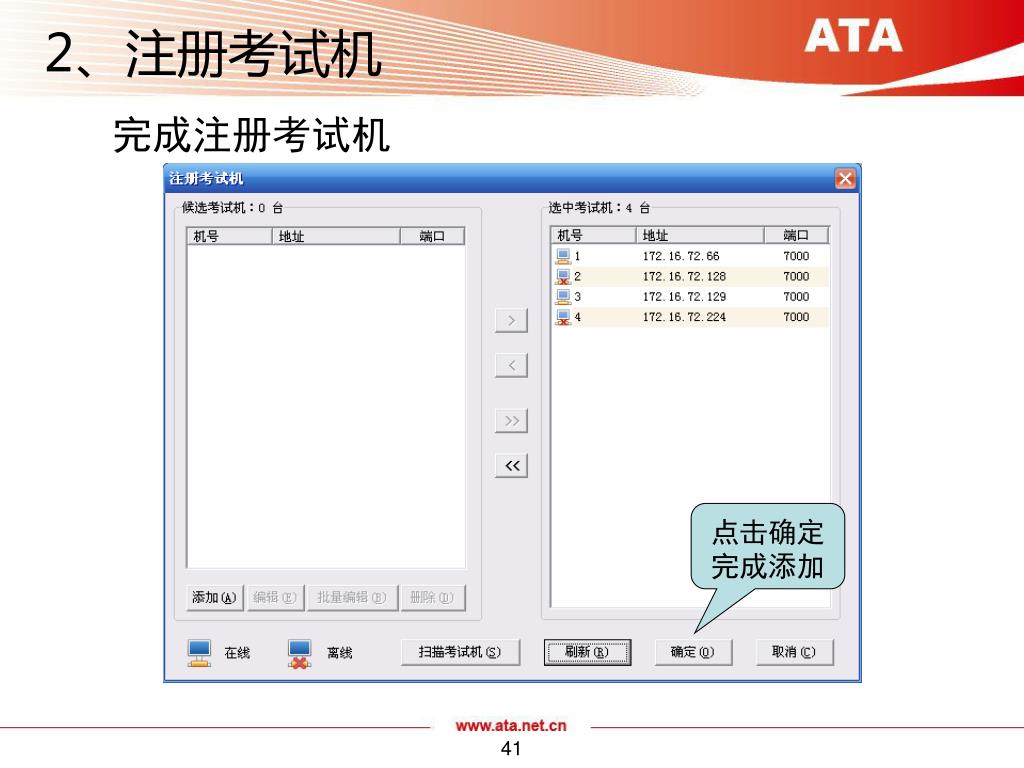 2、注册考试机 完成注册考试机 点击确定完成添加 41