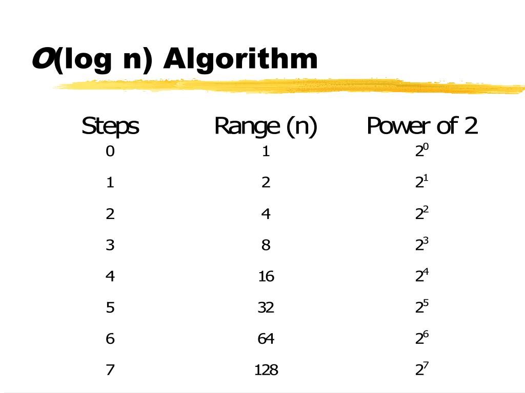 Linear Search vs Binary Search • Linear Search O (n) • Binary Search O (log n) • Example : to search for a number from 1024 entries using the binary search algorithm will only take 10 steps