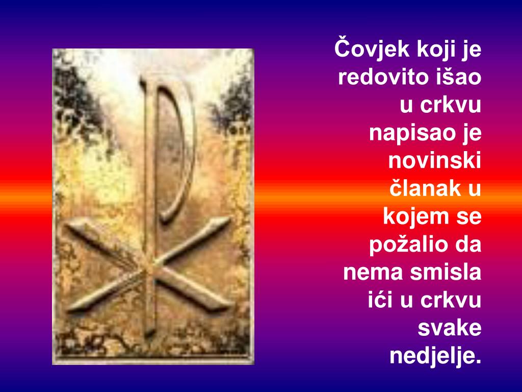 ZAŠTO IĆI U CRKVU?. Čovjek koji je redovito išao u crkvu napisao je novinski članak u kojem se požalio da nema smisla ići u crkvu svake nedjelje. Išao sam u crkvu 30 godina i u tom vremenu čuo sam oko 3.000 propovijedi. N u , skoro da mogu prisegnuti da se ne sjećam ni jedne .