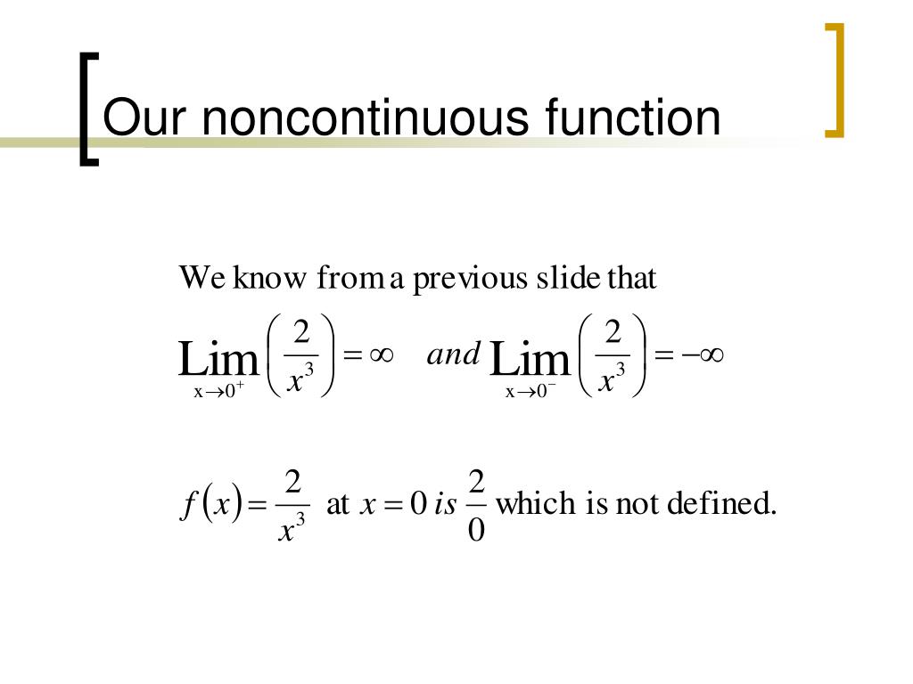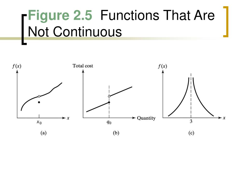 Economics 214 . Lecture 5 Limits and Continuity. Rules for Evaluating Limits. Example 1 of Limit. Example 2 of Limit. Our previous function. Continuity. Figure 2.5 Functions That Are Not Continuous. Our function that was not continuous. Our noncontinuous function. Vertical asymptote.
