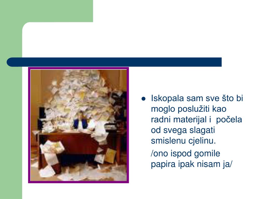 Iskopala sam sve što bi moglo poslužiti kao radni materijal i počela od svega slagati smislenu cjelinu. /ono ispod gomile papira ipak nisam ja/