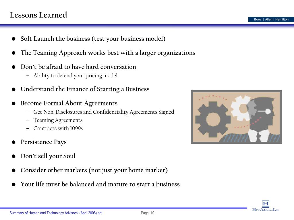 Opportunities How We see Relationships Human and Technology Capital Advisors, LLC is interested in numerous relationship types with Booze Allen Hamilton.