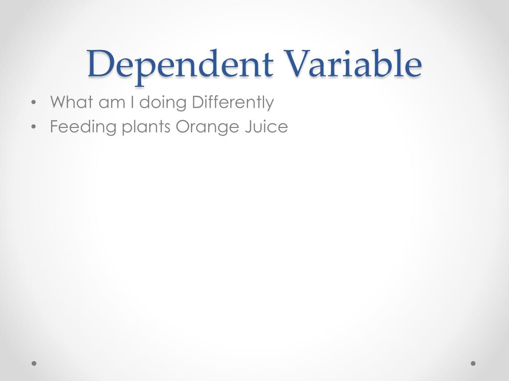 Dependent Variable • What am I doing Differently • Feeding plants Orange Juice