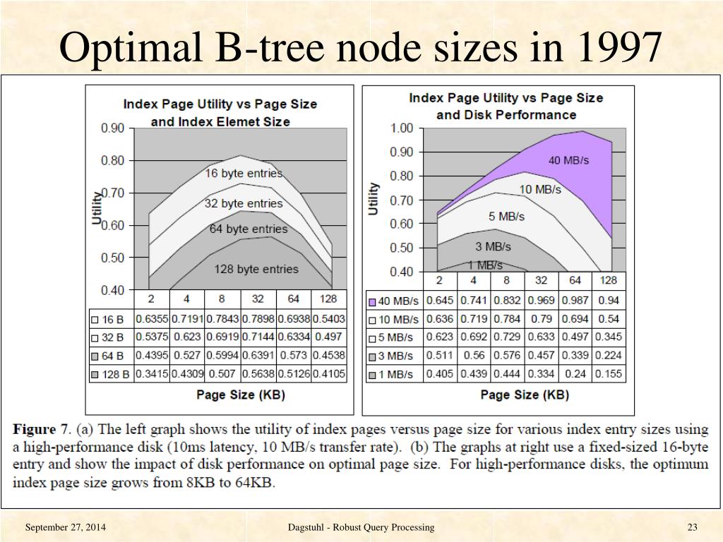 Optimal B-tree node sizes in 1997 Dagstuhl - Robust Query Processing