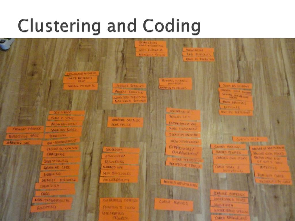 Methodology – considered and rejected 1. Case study strong focus on the context (Yin, 2009) would shift the emphasis away from what I was really seeking to explore (expert coaches’ real-life experiences) 2. Heuristic inquiry wary of the strong focus on myself using ‘self-search, self-dialogue and self-discovery’ at the expense of learning from other exceptional coaches (Moustakas, 1990, p.11)
