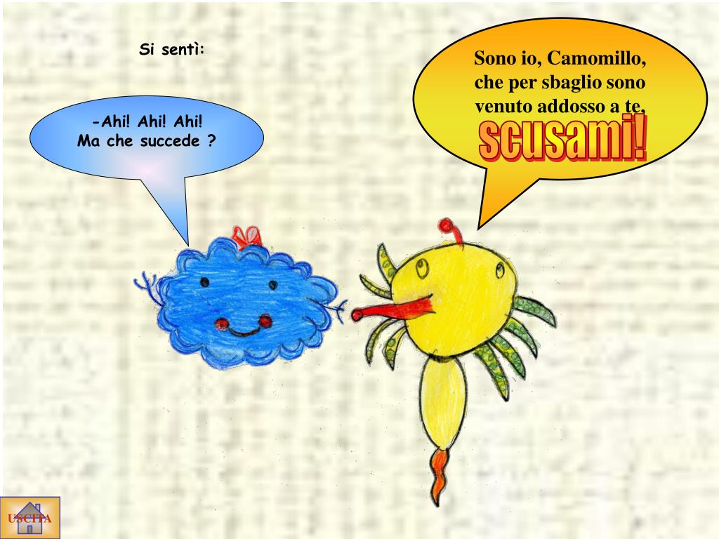 Sono io, Camomillo, che per sbaglio sono venuto addosso a te, Si sentì: -Ahi! Ahi! Ahi! Ma che succede ? scusami!