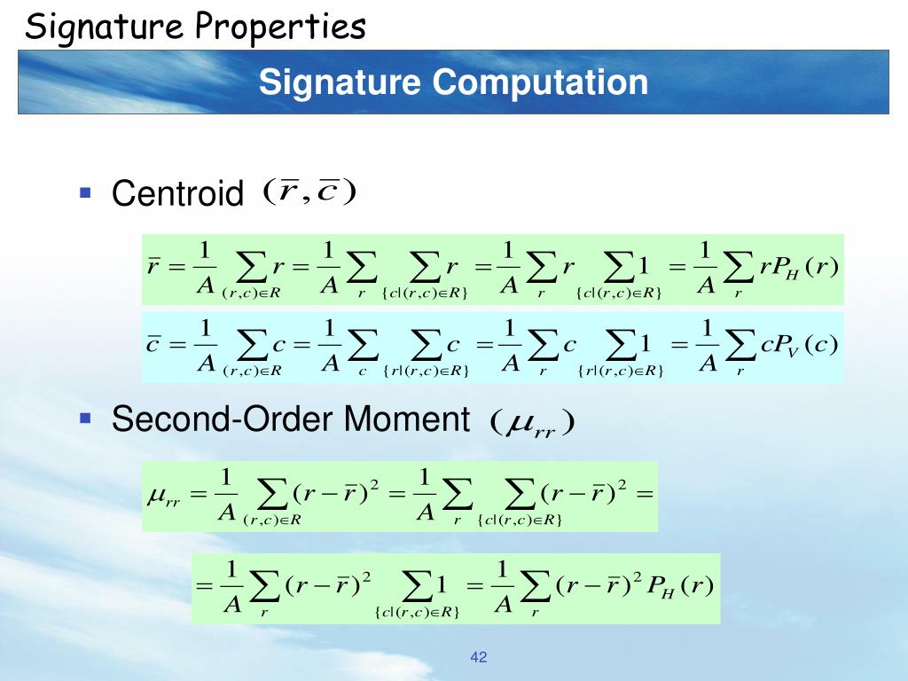 Signature Properties Signature Computation Centroid Second-Order Moment