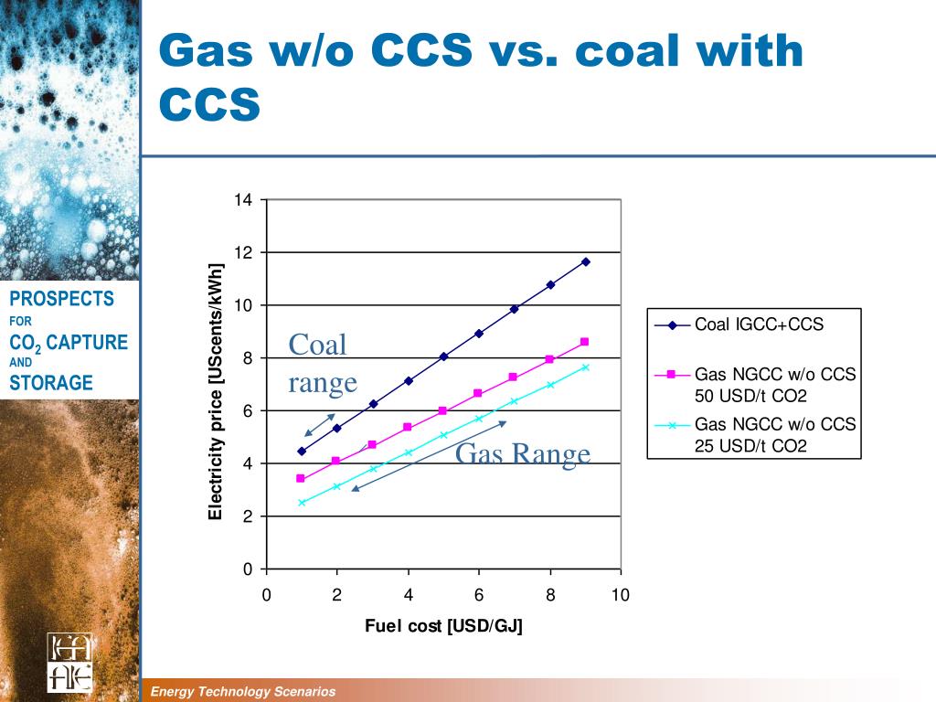 Gas w/o CCS vs. coal with CCS Coal range Gas Range