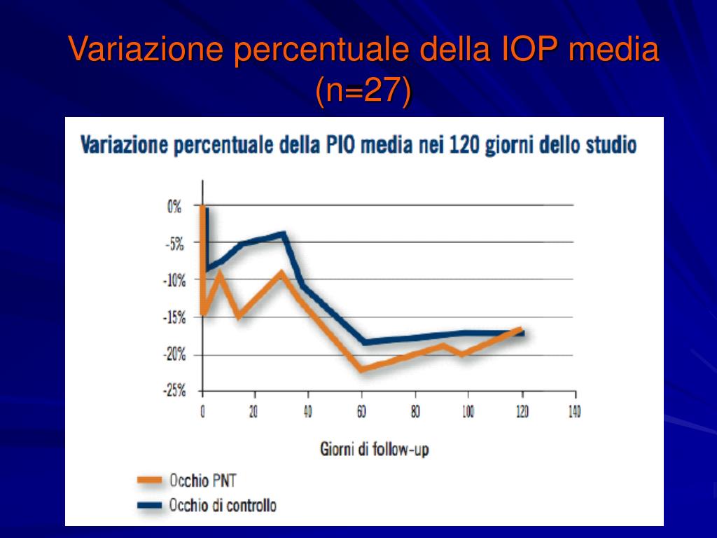 Variazione della IOP media nei soggetti che hanno completato lo studio (n=27)