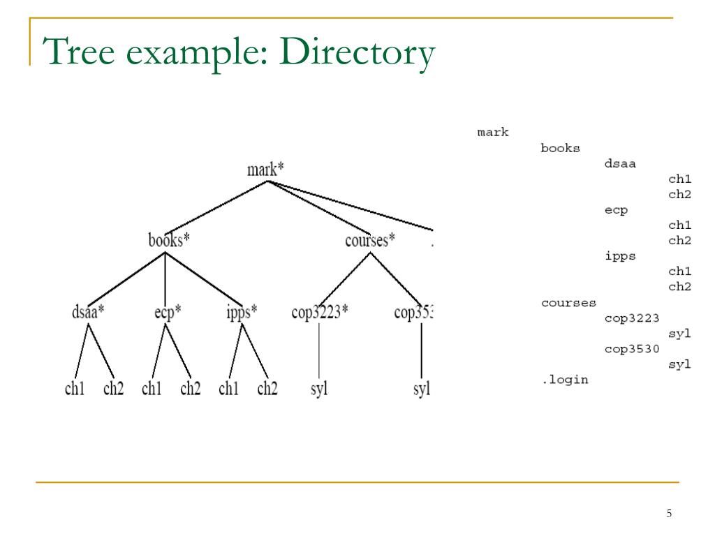 Rooted Trees • In this class, we consider only rooted trees. A rooted tree has the following properties: • One node is distinguished as the root. • Every node c, except the root, is connected by an edge from exactly one other node p. Node p is c’s parent, and c is one of p’s children. – acyclic property • A unique path traverses from the root to each node.