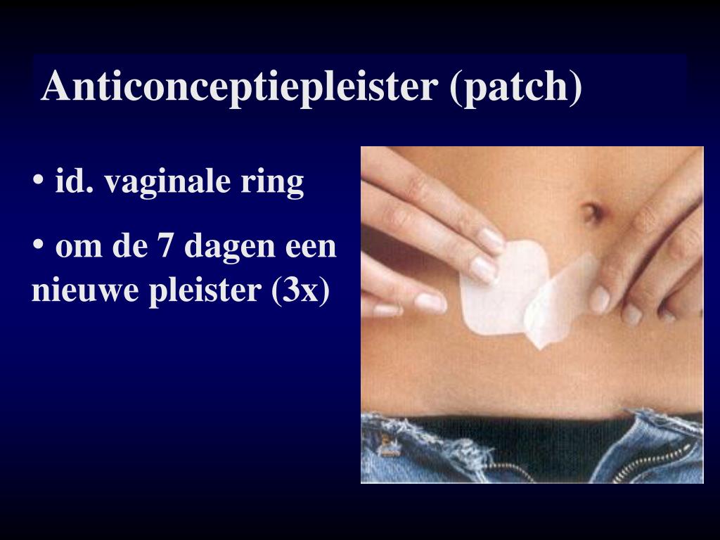 Anticonceptiepleister (patch) • id. vaginale ring • om de 7 dagen een nieuwe pleister (3x)