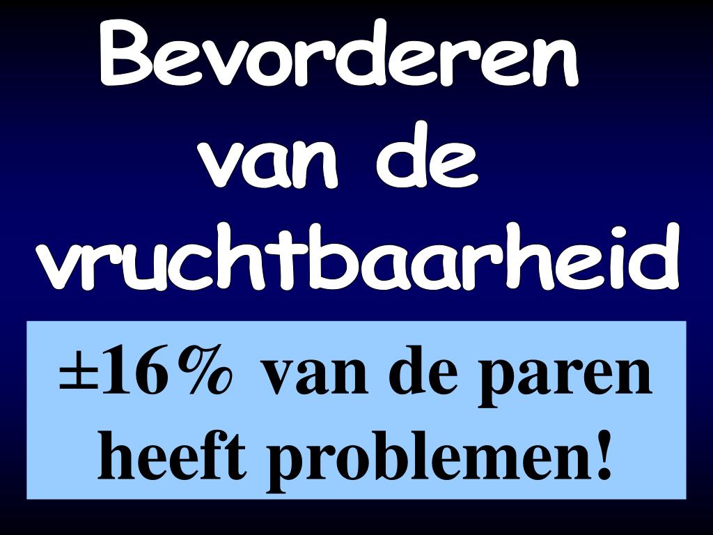 Bevorderen van de vruchtbaarheid ±16% van de paren heeft problemen!