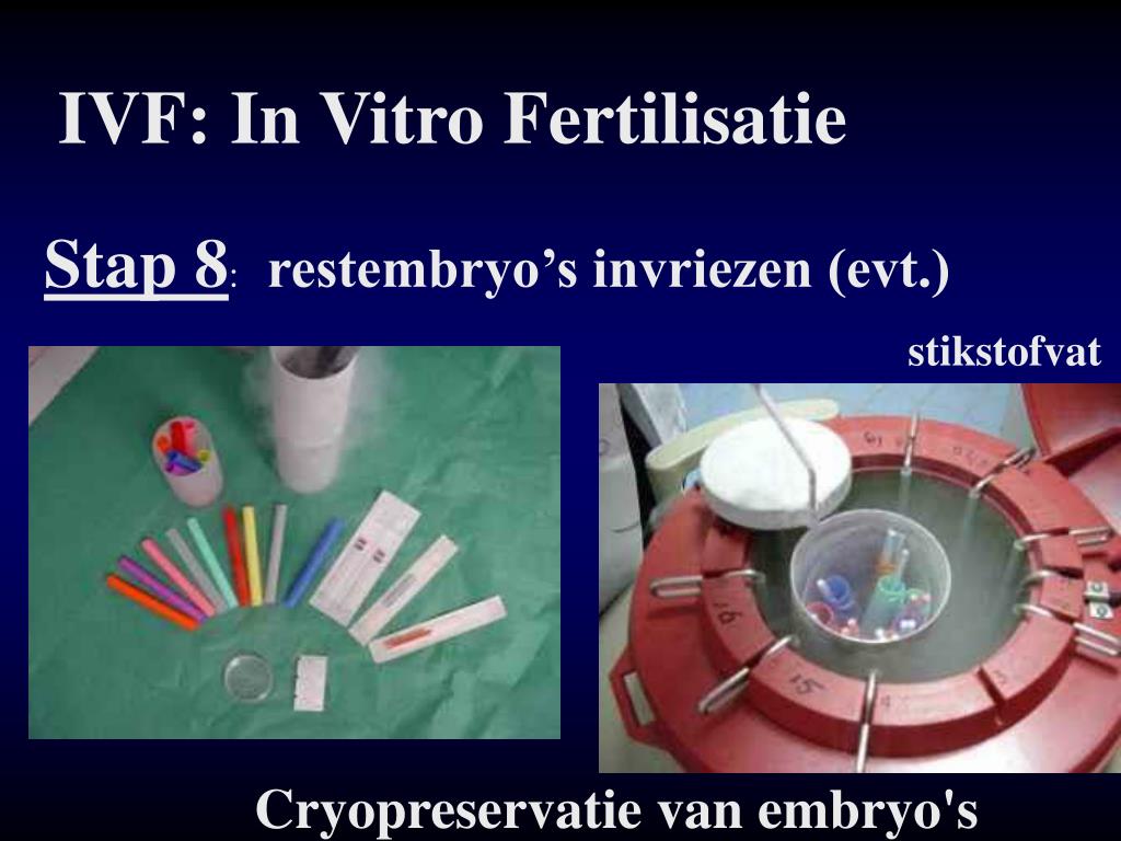 IVF: In Vitro Fertilisatie Stap 8: restembryo’s invriezen (evt.) stikstofvat Cryopreservatie van embryo's