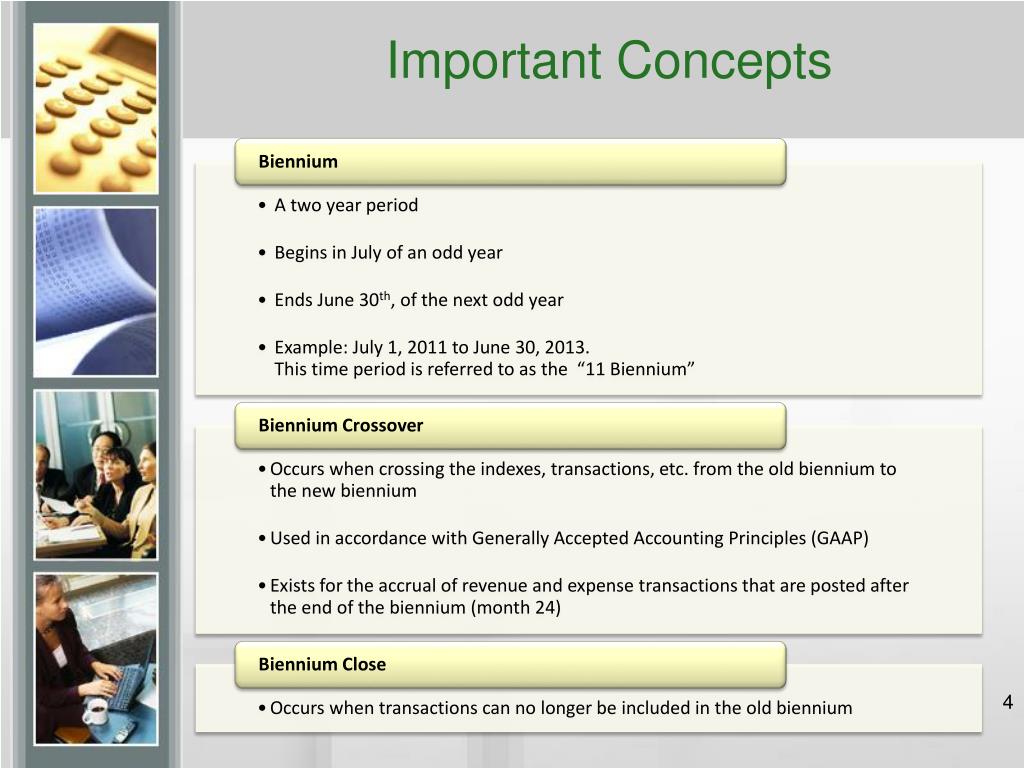 Important Concepts New Biennium July 1st forward June 30th and prior Old Biennium