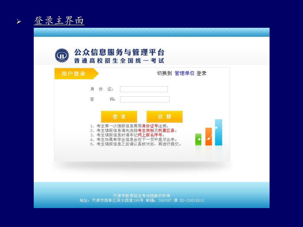 登录主界面. www.zhaokao.net. TAEA. 注册界面. 考籍号 12 位必须填准(水考证为准 ). www.zhaokao.net. TAEA. 录入信息界面. 学籍号 9 位必须填准. 填写:班主任名字. www.zhaokao.net. TAEA. 录入信息界面. www.zhaokao.net. TAEA. 录入信息界面. 往届生以户籍(非身份证号)所在区县为准. www.zhaokao.net. TAEA. 录入信息界面. 学籍号 9 位必须填准. www.zhaokao.net. TAEA. 录入信息界面.
