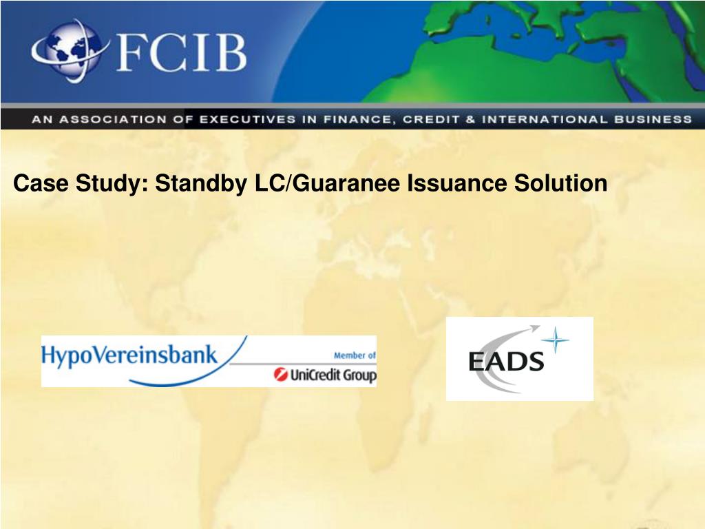 Case Study: Standby LC/Guarantee Issuance Solution 25 identical Bilateral Facility Agreements EADS N.V. 25 Banks L/G Agent Sub-Limits / Guarantees Co-ordination Agreement 38 Subsidiaries • EADS successfully arranged a new L/G Umbrella (existing exposure was rolled in) with 25 identical bilateral L/G facilities that were allocated in a quantity tender. • EADS appointed HVB as a service provider to 25 banks and 38 EADS subsidiaries.
