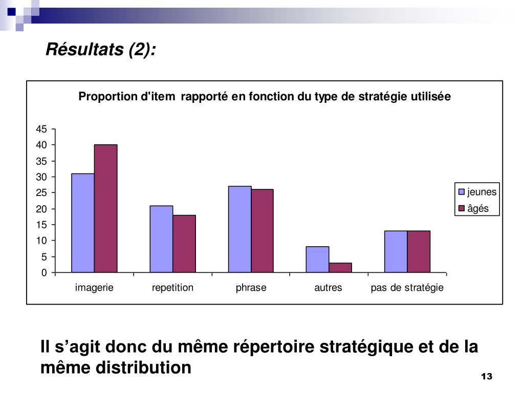 Résultats (2): • Il s’agit donc du même répertoire stratégique et même distribution Il s’agit donc du même répertoire stratégique et de la même distribution