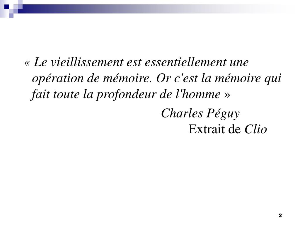« Le vieillissement est essentiellement une opération de mémoire. Or c'est la mémoire qui fait toute la profondeur de l'homme » Charles Péguy Extrait de Clio