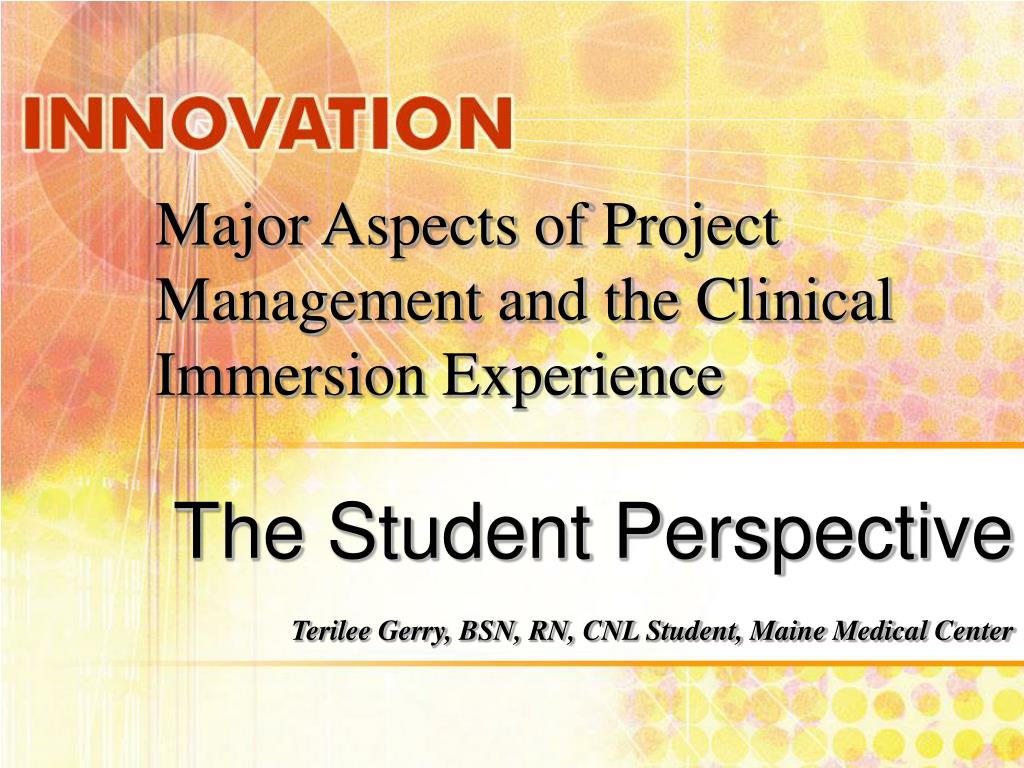 Major Aspects of Project Management and the Clinical Immersion Experience The Student Perspective Terilee Gerry, BSN, RN, CNL Student, Maine Medical Center
