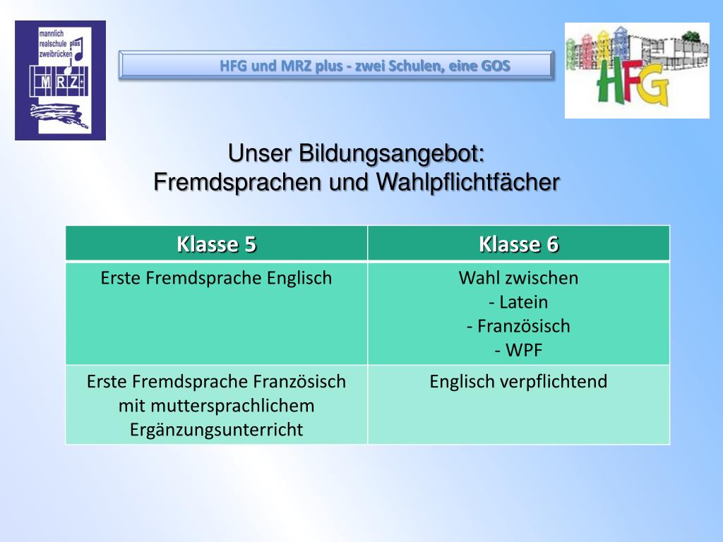 HFG und MRZ plus - zwei Schulen, eine GOS Unser Bildungsangebot: Fremdsprachen und Wahlpflichtfächer