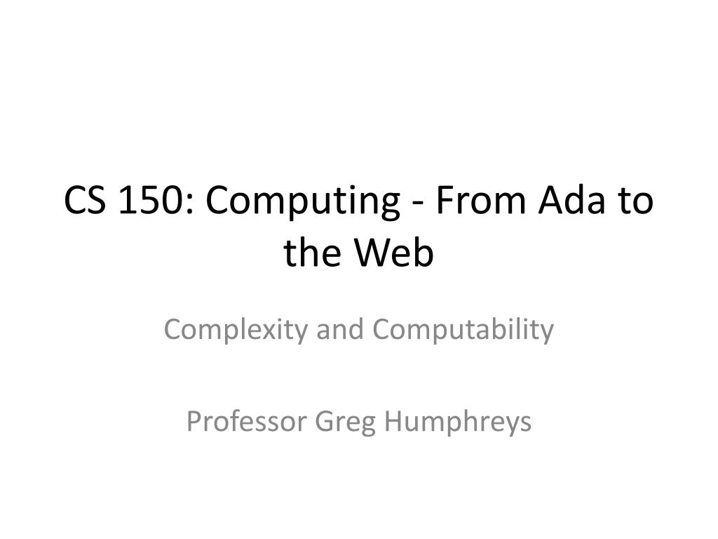 CS 150: Computing - From Ada to the Web Complexity and Computability Professor Greg Humphreys
