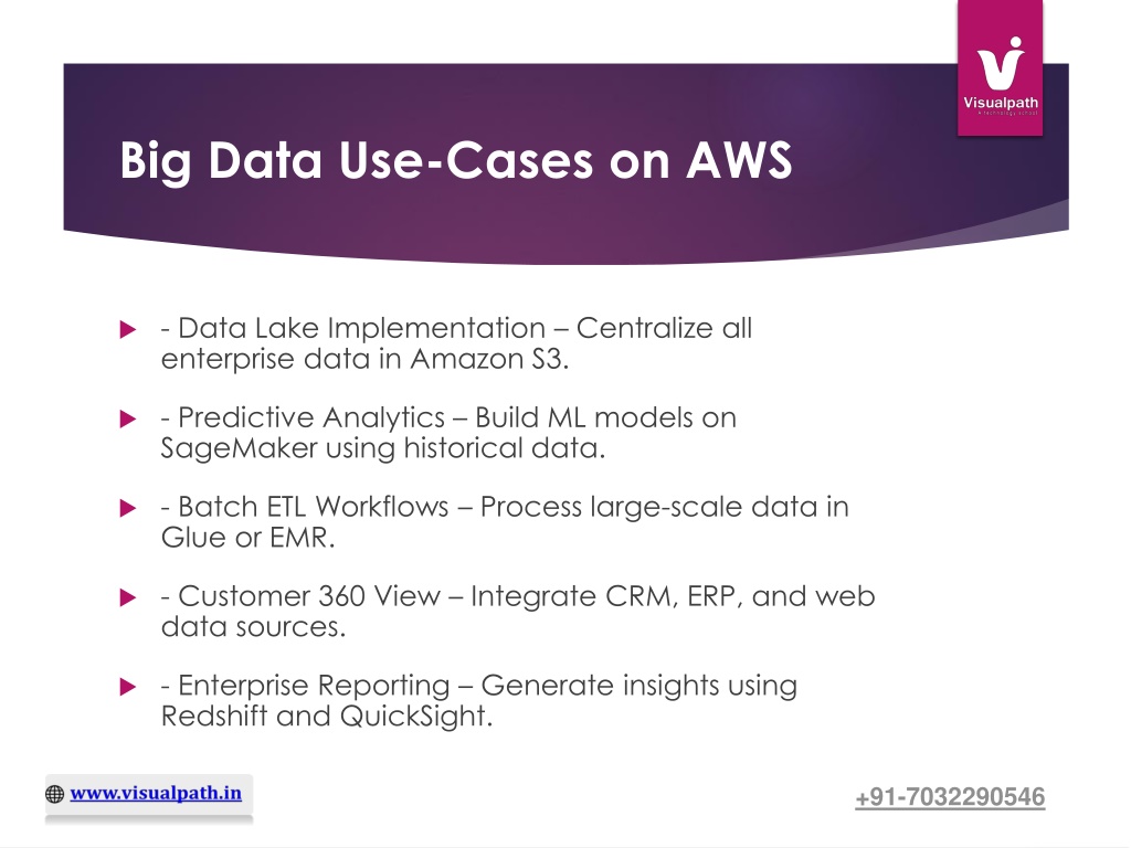 10. AWS Data Engineering Address:- Flat no: 205, 2nd Floor,Nilgiri Block, Aditya Enclave,Ameerpet, Hyderabad-1  Ph. No: +91-7032290546 Visit:www.visualpath.in  E-Mail: online@visualpath.in Contact +91-7032290546