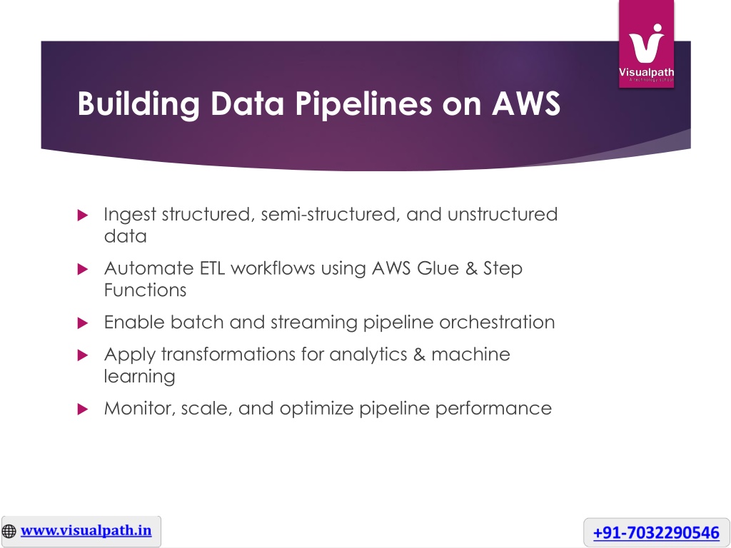 Ingest structured, semi-structured, and unstructured data Automate ETL workflows using AWS Glue & Step Functions Enable batch and streaming pipeline orchestration Apply transformations for analytics & machine learning Monitor, scale, and optimize pipeline performance Building Data Pipelines on AWS