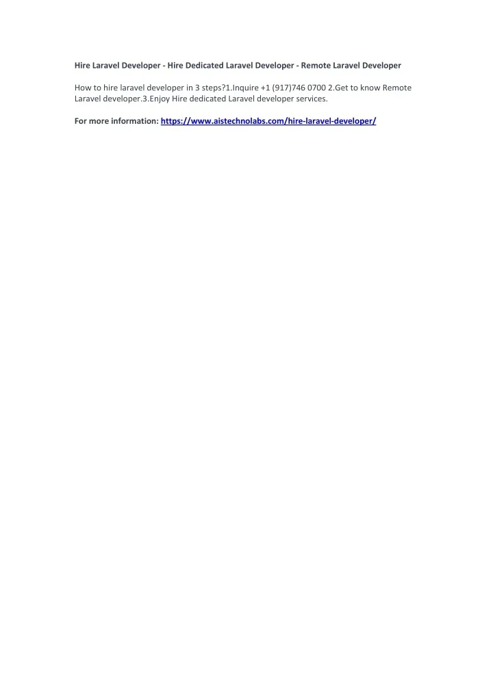 How to hire laravel developer in 3 steps?1.Inquire 1 (917)746 0700 2.Get to know Remote Laravel developer.3.Enjoy Hire dedicated Laravel developer services.<br><br>For more information: https://www.aistechnolabs.com/hire-laravel-developer/