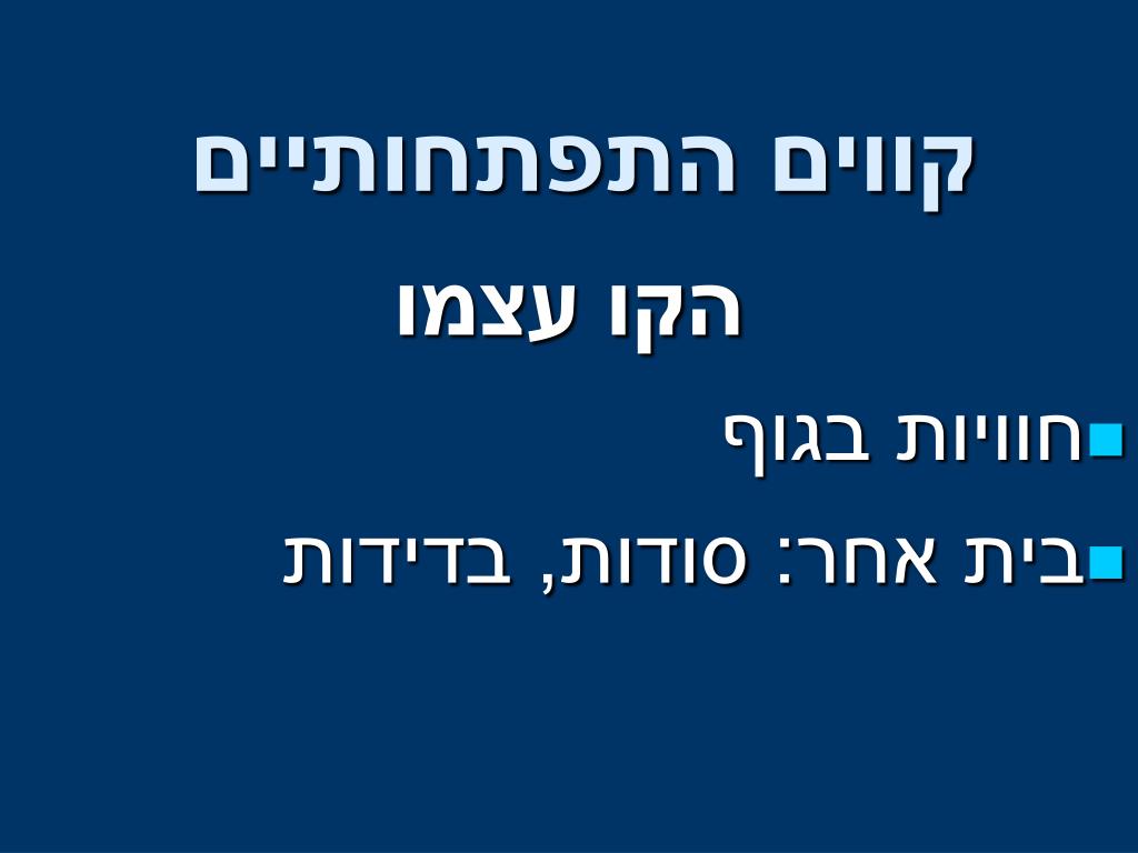 קווים התפתחותיים "המתאם הכללי" יתרון ההגנות על דחפים "כייף להיות עצמי" זהות: שונה – "כמו כולם" עצמי זולתעצמי