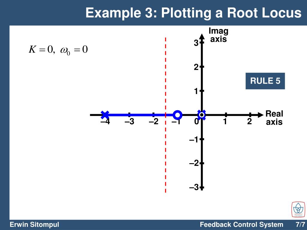 Feedback Control System. THE ROOT-LOCUS DESIGN METHOD. Chapter 5. Dr.-Ing. Erwin Sitompul. http://zitompul.wordpress.com. Example 3: Plotting a Root Locus. Now, sketch the root locus for:. RULE 1. There are 3 branches of locus. Two starting from s = 0 and one from s = –4.