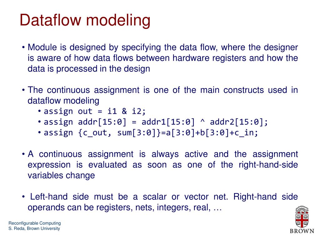 Reconfigurable Computing (EN2911X, Fall07) Lecture 06: Verilog (2/3). Prof. Sherief Reda Division of Engineering, Brown University http://ic.engin.brown.edu. Dataflow modeling.