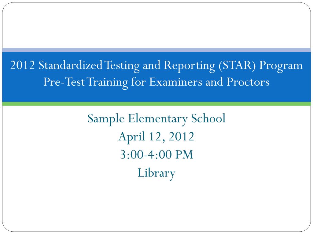 2012 Standardized Testing and Reporting (STAR) ProgramPre-Test Training for Examiners and Proctors Sample Elementary School April 12, 2012 3:00-4:00 PM Library