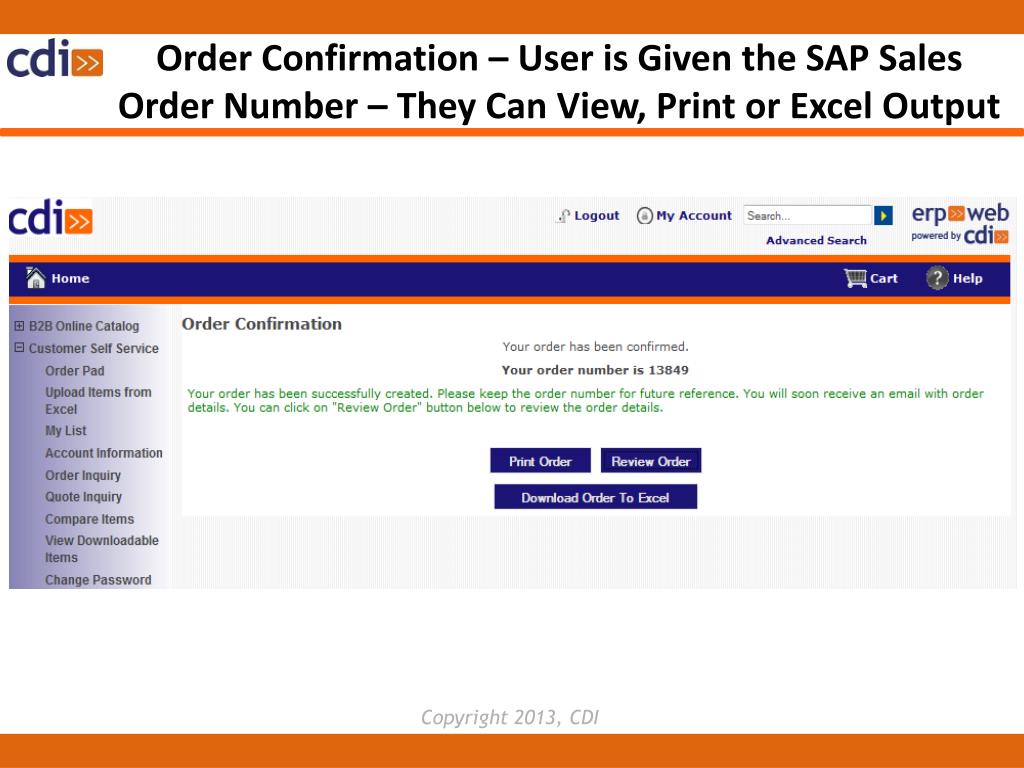 Order Confirmation – User is Given the SAP Sales Order Number – They Can View, Print or Excel Output