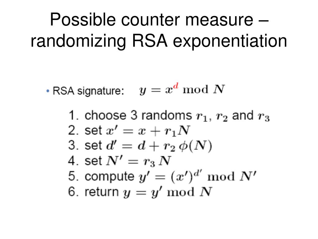 SPA example (cont’d) • Unprotected modular exponentiation – square and multiply algorithm