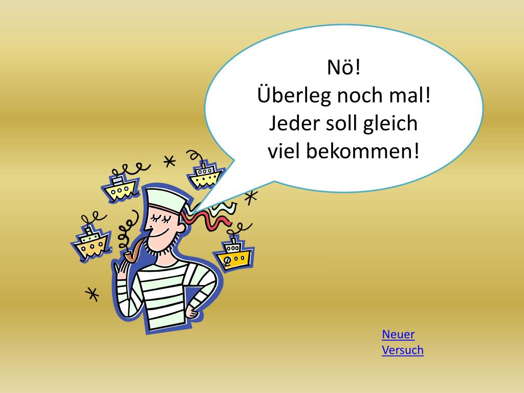 Nö! Überleg noch mal! Jeder soll gleich viel bekommen! Neuer Versuch