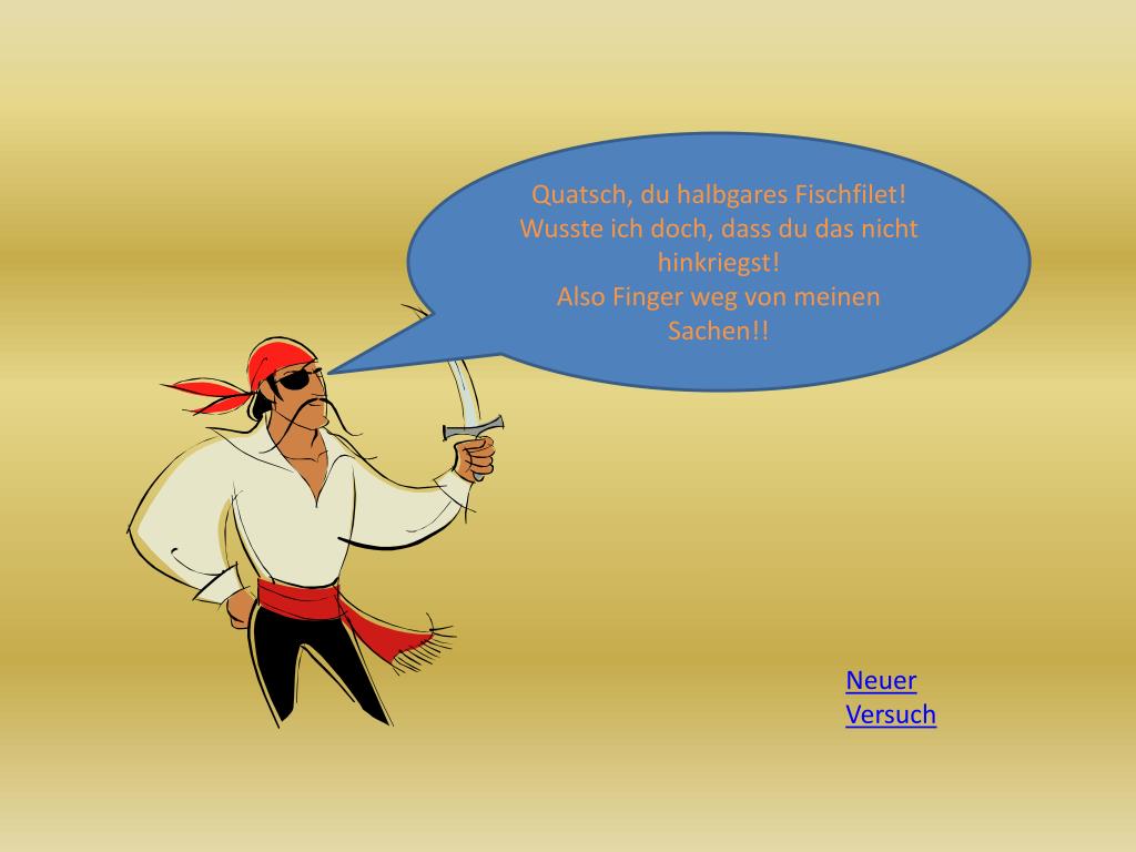 Quatsch, du halbgares Fischfilet! Wusste ich doch, dass du das nicht hinkriegst! Also Finger weg von meinen Sachen!! Neuer Versuch
