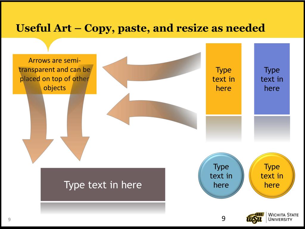 Useful Art – Copy, paste, and resize as needed Type text in here Type text in here Arrows are semi-transparent and can be placed on top of other objects Type text in here Type text in here Type text in here