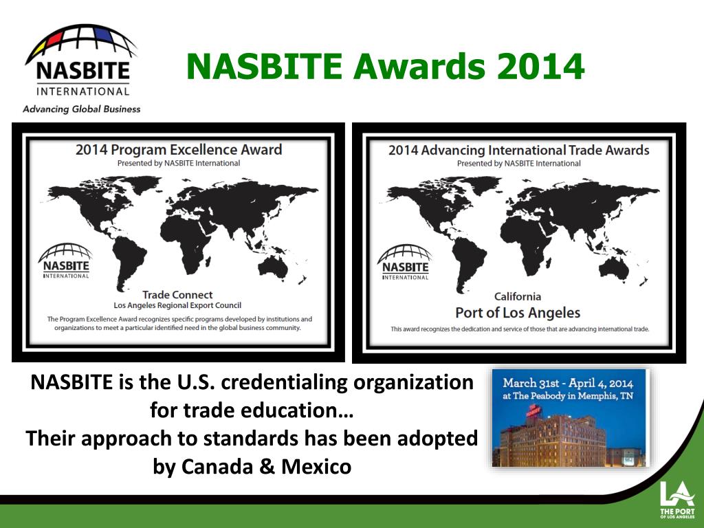NASBITE Awards 2014 NASBITE is the U.S. credentialing organization for trade education… Their approach to standards has been adopted by Canada & Mexico