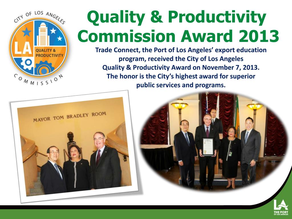 Quality & Productivity Commission Award 2013 Trade Connect, the Port of Los Angeles’ export education program, received the City of Los Angeles Quality & Productivity Award on November 7, 2013. The honor is the City’s highest award for superior public services and programs.