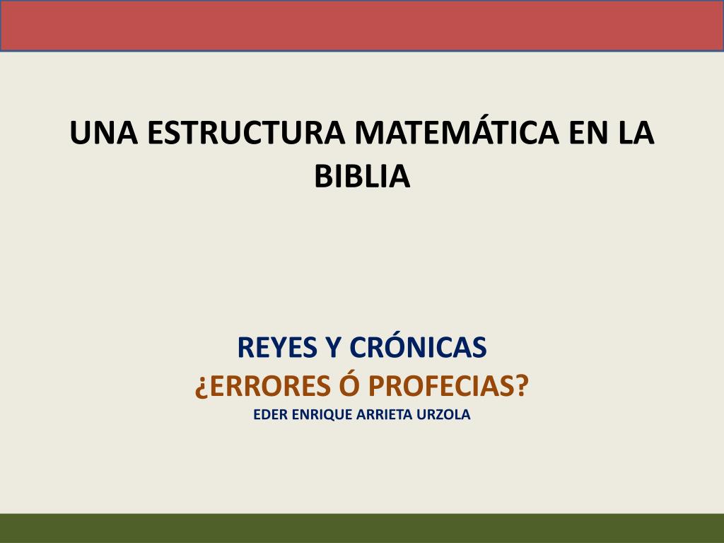 UNA ESTRUCTURA MATEMÁTICA EN LA BIBLIA REYES Y CRÓNICAS ¿ERRORES Ó PROFECIAS? EDER ENRIQUE ARRIETA URZOLA. REINO DE JUDÁ E ISRAEL. LO QUE MUESTRAN ALGUNAS CRONOLOGÍAS. ¿ERRORES?.