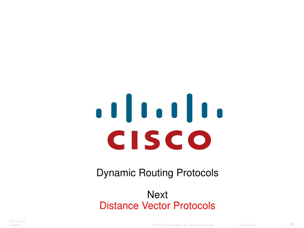 Routing Protocols and Concepts. Introduction to Dynamic Routing Protocol Chapter 3 Modified by Pete Brierley. What will we learn from chapter 3?. Describe the role of dynamic routing protocols and place these protocols in the context of modern network design.