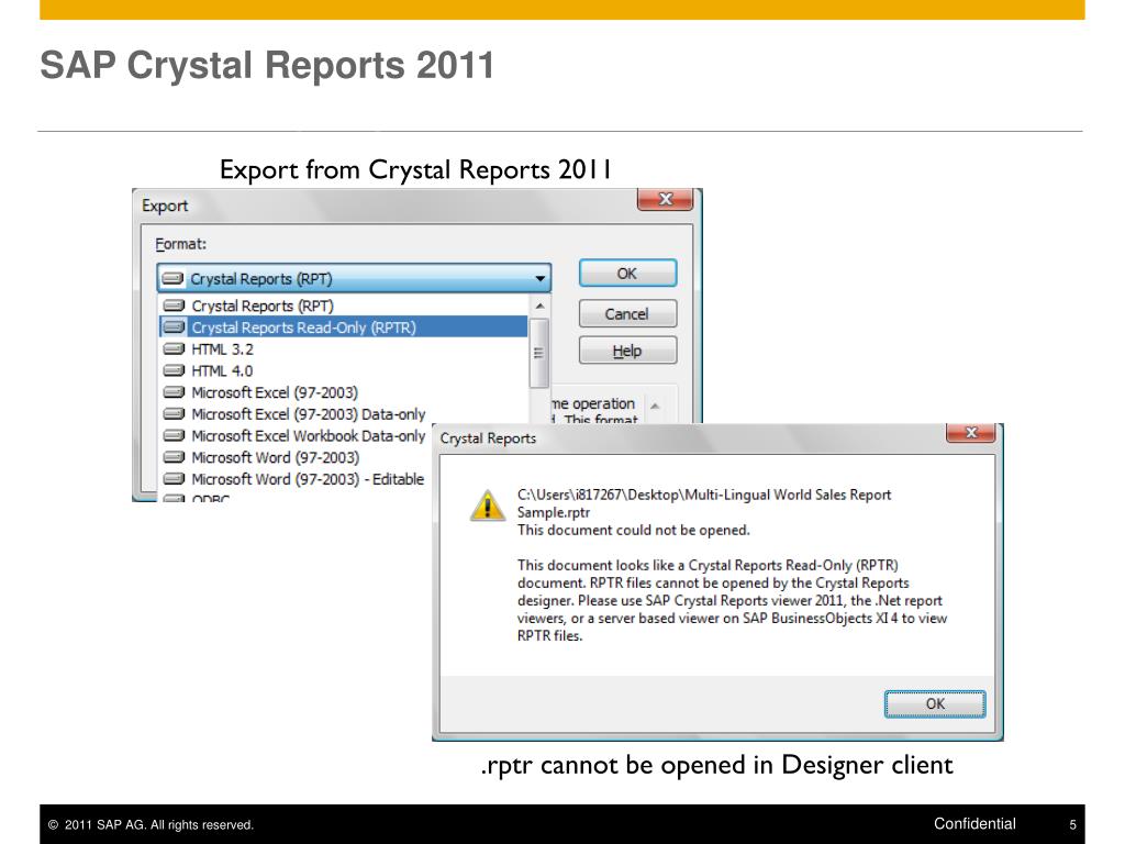 SAP Crystal Reports 2011New Read-Only Report Format (for Viewer) Export from Crystal Reports 2011 .rptr cannot be opened in Designer client